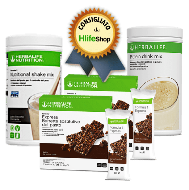 Consigliato per un fabbisogno proteico giornaliero fino a 90g di Proteine. Include: (1x) Formula 1 barattolo, (1x) Infuso alle Erbe, (2x) Barrette Express.